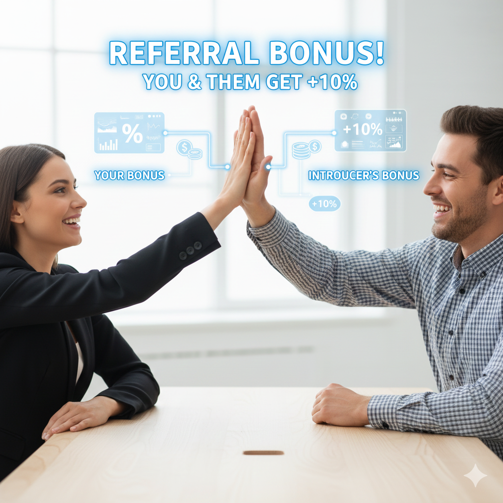 रेफ़रल प्रोग्राम — 6 महीने तक 10% बोनस, ऑटोमैटिक