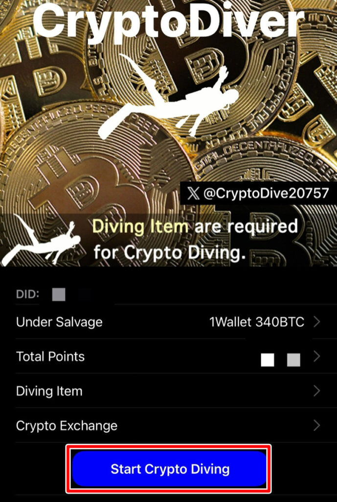 When you launch the app, you’ll see a button at the bottom labeled “Start CryptoDiving.”