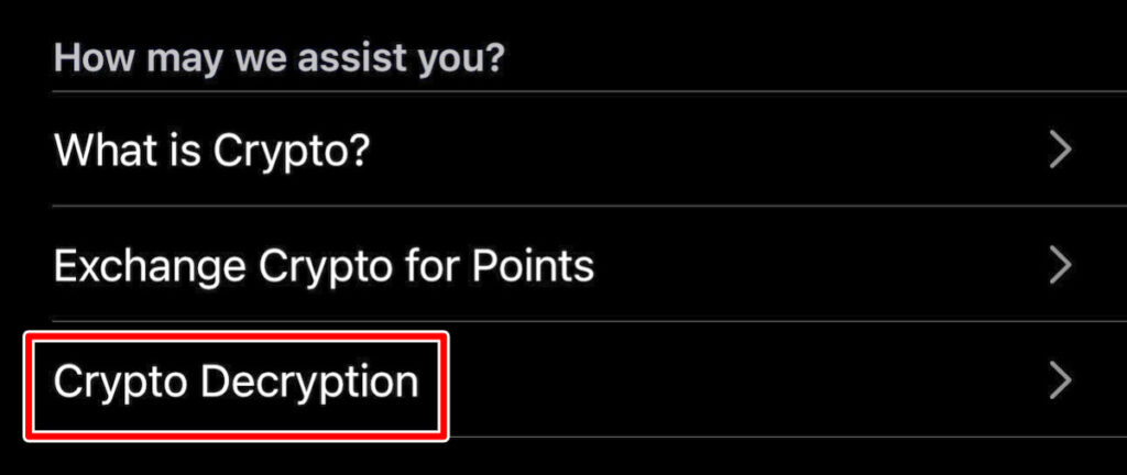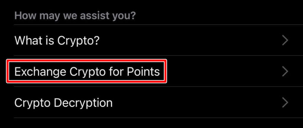 Go back to the Crypto Exchange, then tap “Exchange Crypto for Points.”