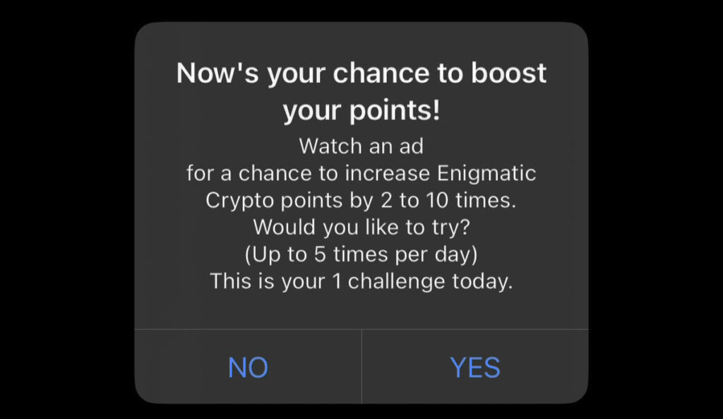 Additionally, when exchanging Crypto, you may receive a bonus chance where watching an advertisement can multiply your points by up to 10×!