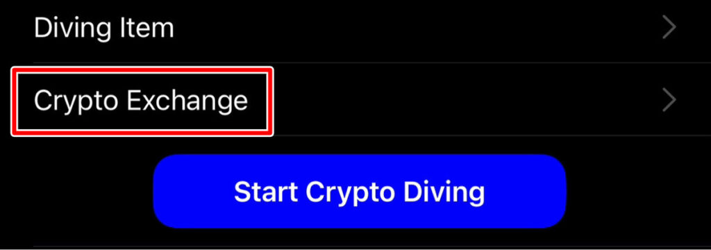 Tap “Crypto Exchange”, which is located above the CryptoDiving button.